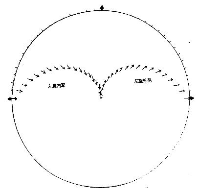 | 天沼矛 天沼矛を上から見ると、四放出の左旋アシカビは伊邪那岐神の神相である。 反対に下から見ると、四放出の右旋アシカビは伊邪那美神の神相である。 天之御柱は岐神から見れば直立(順立)を本位とし、美神から見れば逆立を本位とする。 |